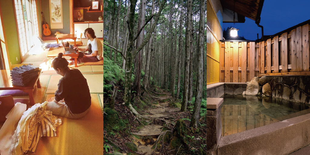 山間にひっそりと佇む昔ながらの温泉町・湯峯。古来より熊野古道を歩いて熊野本宮を目指す人々が、湯垢離場として身を清め旅の疲れを癒したと言われています。